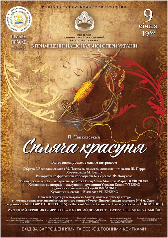 9 січня 2018 року, о 19.00, Одеський національний академічний театр опери та балету представить балет Петра Чайковського «Спляча красуня» на сцені Національного академічного театру опери та балету України імені Т. Г. Шевченка! Прем’єра балету відбулася у травні 2017 року і одразу підкорила поціновувачів класичного балетного мистецтва вишуканим втіленням хореографічного, музичного, сценографічного рішення вистави на сцені Одеського театру опери та балету. Показ вистави на сцені Національної опери України пройде за підтримки Голови Благодійної організації «Фонд Бумбураса» Пантеліса Бумбураса (http://boumbouras-foundation.com/). Гастролі трупи Одеського театру опери та балету на сцені Національної опери України є непересічною мистецькою акцією, що посилює творчі зв'язки між національними оперними театрами України. Саме завдяки особисто Голові Благодійної організації «Фонд Бумбураса» Пантелісу Бумбурасу Одеський оперний театр отримав можливість представити високий рівень своїх вистав та творчих досягнень на столичній сцені. Балет «Спляча красуня» – це чарівна казка, яка подарує глядачам прекрасний настрій під час Різдвяних свят! Вхід на виставу буде здійснюватися за запрошеннями та безкоштовними квитками. «Спляча красуня» – легендарний балет-феєрія Петра Чайковського-Маріуса Петіпа визнаний абсолютним шедевром хореографічного мистецтва, в якому співробітництво лібретиста, композитора і балетмейстера виявилося максимально гармонійним. Була створена складна поліфонічна структура балетної вистави, що об'єднала монументальність розгорнутих хореографічних композицій і витонченість танцювальних мініатюр. Балетна музика Чайковського відродила класичний танець до нового життя, до нових художніх і емоційним вершин. Композитор надав балетній партитурі симфонічної єдності, цілісності форми, наскрізного музичного розвитку. Саме новаторська музика «Сплячої красуні» надихнула Маріуса Петіпа на пошуки нового типу побудови балетної вистави. Історія життя балету на сценах світу свідчить про постійну зацікавленість до нього хореографів, виконавців і глядачів. У багатьох постановках в якості основи зберігаються композиції «класичного новатора» Маріуса Петіпа. Його версії відтворювали Микола Сергєєв, Федір Лопухов, Костянтин Сергєєв, Олександр Горський, Василь Тихомиров, Асаф Мессерер, Михайло Габович, Надія Федорова, Юрій Григорович та інші. Ось уже понад 100 років цей казковий спектакль займає чільне місце в репертуарі провідних світових театрів, серед яких Covent Garden, Opéra de Paris, The Australian Ballet, The National Ballet of Canada, New York City Ballet, і збирає аншлаги та бурхливі овації глядачів. Одеський національний академічний театр опери та балету неодноразово звертався до постановки цього шедевру світової хореографічної класики. У 2017 році – ювілейному для Одеського театру (1 жовтня 2017 року виповнилося 130 років архітектурному шедевру) – театр знову звертається до безсмертної спадщини композитора – балету «Спляча красуня», намагаючись максимально наблизити його до оригінальної версії. Режисер-постановник вистави, народна артистка республіки Молдова Марія Полюдова привнесла в цю редакцію фрагменти хореографії великого французького балетмейстера, що рідко виконуються, збагативши її елементами хореографії Ф. Лопухова і К. Сергєєва. «Намагаючись наблизит