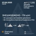 Повітряні сили ЗСУ: вночі знешкоджено 174 засоби повітряного нападу, запущені росіянами по Україні