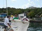 Команда информагентства «Контекст-Причерноморье» завоевала 2 место в регате «Алые паруса» для смешанных экипажей профессионалов и журналистов, передает корреспондент ИА «Контекст-Причерноморье». Мероприятие состоялось 14 августа в Черноморском яхт-клубе, в рамках фестиваля «Алые паруса» (приуроченного ко дню рождения Александра Грина) при содействии директора государственного предприятия «Черноморский яхт-клуб» заслуженного тренера Украины Сергея Котова, председателя правления Одесской региональной организации Национального союза журналистов Украины Юрия Работина и группы компаний Transbunker. Соревнования проходили на яхтах класса Laser SB3. В регате участвовало 7 экипажей, которые состояли из спортсменов-профессионалов яхтенного спорта и журналистов. Первое место заняла команда мастера спорта, участника трех кругосветных гонок, пятнадцатикратного участника Key West (Калифорния США) Владимира Кулиниченко совместно с журналистами ИА «Центр-Медиа» Геннадием Чабановым и Еленой Димитриевой. Второе место завоевал экипаж мастеров спорта, многократных чемпионов Украины, победителей регаты «Дружба» Владимира Стасюка и Владимира Богомолкина вместе с представителями ИА «Контекст-Причерноморье» Владимиром Рунцом и Георгием Копаневым. Третье место досталось экипажу в составе мастера спорта, участника чемпионатов Европы и мира Валентина Климентьева, Александра Зиновьева и представителя телеканала «1+1» Владимира Крыжановского. Победители получили памятные подарки и дипломы. |