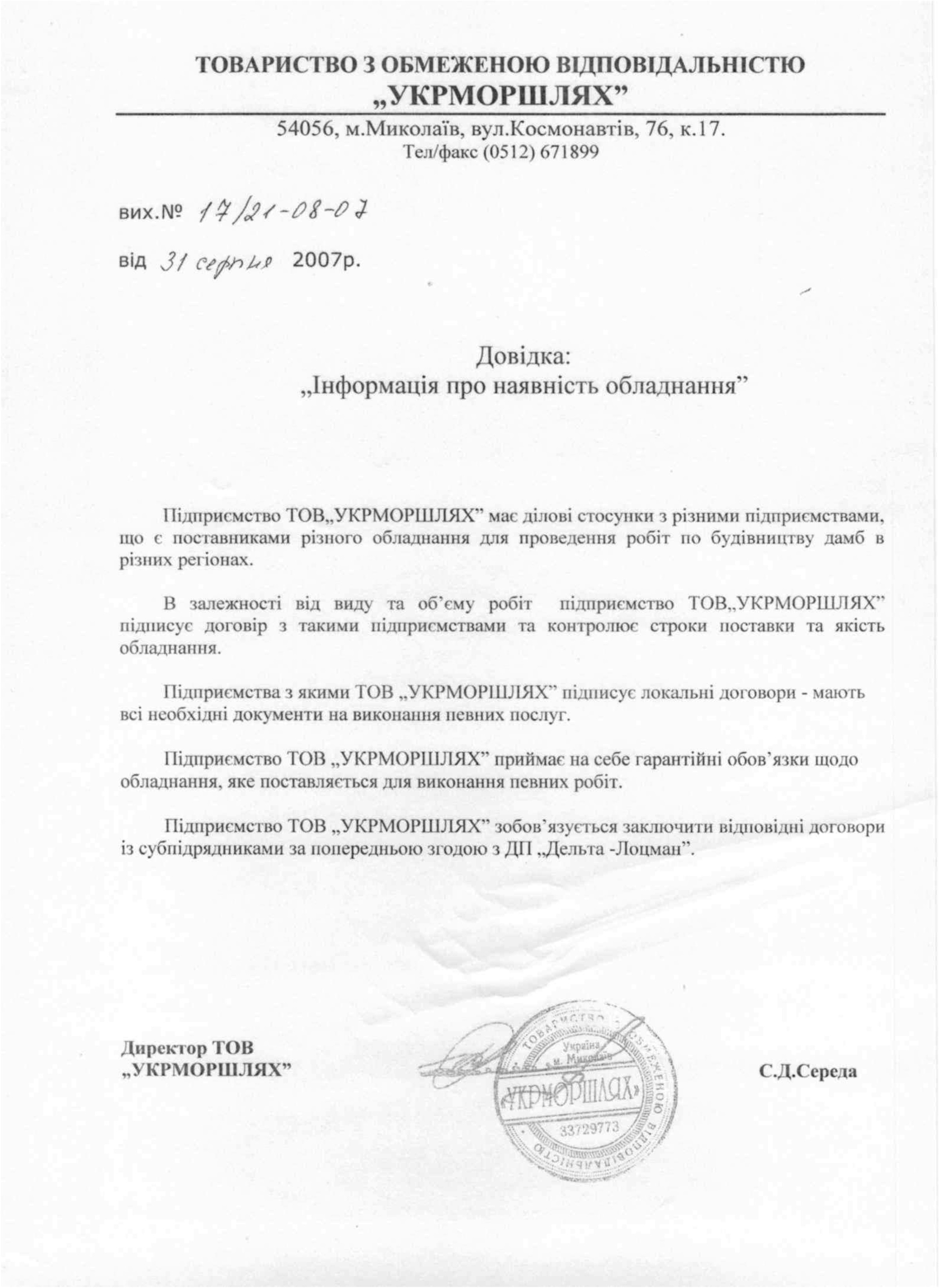 - ООО «Укрморшлях» и прежнее руководство самого ГП «Дельта-лоцман» приложило максимум усилий, чтобы остановить проект: при объеме строительства 132 тыс. кубометров в течении срока действия договора (более чем полгода) выполнено 6,6 тыс. куб. метров (5%), при этом акты подписаны и деньги оплачены на 46 млн. грн. из 68,1 млн. грн. по договору (52%). Так что проект таки пытались остановить, но – сам «Укрморшлях», и – безуспешно.