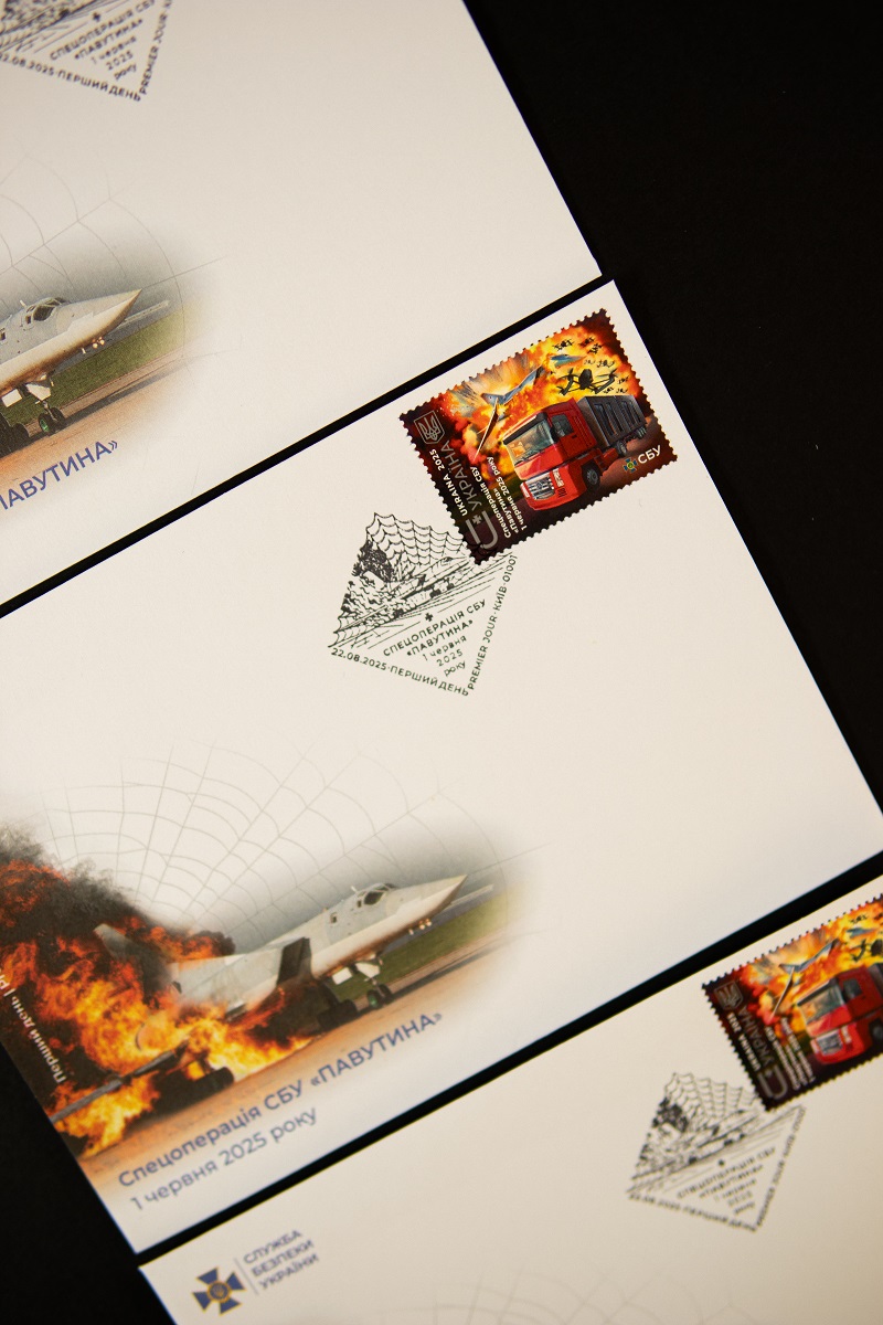 До 34-ї річниці Незалежності Укрпошта та Служба безпеки України об’єдналися, щоб створити особливу поштову марку на честь однієї з найсміливіших спецоперацій сучасної історії — «Павутина». Цим випуском ми вкотре нагадуємо ворогу, що українці дістануть його «на морі, в повітрі, на землі, а як треба — і з-під землі».