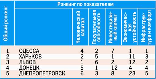 Одесситы любят не только продавать, но и покупать. Открывшийся в 2009 году на деньги британского инвестфонда ТРЦ в Фонтанке заполнен арендаторами и посетителями – вакантность центра составляет менее 1%, еженедельно его посещают около 100 000 человек. Австрийский девелопер Meinl European Land в этом году планирует ввести в эксплуатацию торговый центр площадью 60 000 кв. м. На рынке продуктового ретейла потеснить одесситов непросто – здесь доминируют местные игроки («Таврия-В», «Виртус»). – Техас должны грабить техасцы, – шутит Олег Радковский, владеющей сетью супермаркетов «Наталка». Кадровый голод не страшен Для девелоперов из других городов возможностей больше. По данным Украинской торговой гильдии, на 1000 человек в Одессе приходится всего 13 кв. м офисных помещений высокого класса, тогда как в Киеве этот показатель составляет 406 кв. м. – Офисно-торговых центров можно построить еще не один десяток, – соглашается Радковский. Иностранцы этим пользуются – австрийская компания Uniqa Real Estate заканчивает реконструкцию бизнес-центра площадью 8490 кв. м на Большой Арнаутской. В городе есть представительства многих глобальных корпораций (Bosch, Caterpillar, Mercedes). Головной офис «Яндекс.Украина» до сих пор находится в Одессе, а не в столице. В компании это объясняют тем, что именно здесь нашелся подходящий руководитель. Кадровый голод не страшен одесским бизнесменам. По данным исследования HeadHunter, 95% кандидатов, рассматривающих вакансии из других городов, готовы переехать в Одессу. Почему? – Наши люди знают толк в еде, искусстве, архитектуре и любят красивую жизнь. На этом и нужно строить бизнес в Одессе, – говорят они. Подробности Как считали баллы Города оценивались, исходя из их привлекательности для компаний. Издание проанализировало 15 социально-экономических показателей областных центров и городов с населением свыше 200 000 человек. Киев не вошел в исследование. Города ранжированы по суммарному количеству баллов, полученных по пяти группам показателей. Наш город выбирали по таким показателям, как человеческий капитал: (численность населения, уровень преступности, образованность), покупательная способность, развитие малого бизнеса, открытость города сторонним инвесторам, экономическая устойчивость, инфраструктура и комфорт. Автор: Дмитрий Покровский