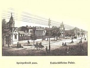 Трудно отрицать тот факт, что наш город во многих начинаниях часто становился пионером. Так, именно в Одессе Иосиф Тимченко изобрел первый киноаппарат; открылась первая в государстве и вторая в мире бактериологическая станция; по Одессе проехал первый в стране автомобиль, а за ним на первых ввезенных роликовых коньках промчался Сергей Уточкин; в небо взлетали из первого авиаклуба первые авиаторы страны... А во время новогодних и рождественских праздников нелишне вспомнить, что в свое время Одесса приобрела известность, как город в котором скорее всего была украшена первая дворцовая елка во всей Империи. Так выглядел дом Потоцкой, где в 1811 году была проведена первая елка Одессы (гравюра В. Вахренова). Сегодняшний адрес — Софиевская, 7 В своем труде «Старая Одесса» Александр Михайлович де-Рибас — прямой потомок Феликса де-Рибаса, утверждает, что во времена Ришелье во дворце Потоцких была наряжена первая Рождественская ель, в честь внебрачной дочери Александра I и Марии Антоновны Нарышкиной Софии. Девочка прибыла в Одессу с матерью для поправки здоровья. Для почетных гостей у Потоцких арендовали дворец. Правда, здание, о котором упоминает автор, это дворец одесского Художественного музея. Оно было построено гораздо позже описываемых событий. Объясняется всё просто: на Софиевской улице, неподалеку от вышеупомянутого дворца, и сегодня особняком стоит дом зеленого цвета, в котором, скорее всего, и останавливалась Мария Антоновна с дочерью. Именно там в рождественский вечер 1813 года по поручению Ришелье его секретарем и в то же время шурином графом Луи де-Рошешуаром был организован великолепный бал, где присутствовал весь нобилитет (знать) Одессы той поры — графиня Потоцкая, граф Шарль де-Сен-При, организовавший в Одессе первый коммерческий суд страны, граф де-Венансон. Это и Разумовский, Давыдов, Раевский, Перовский, Долгорукий, граф Ланжерон, генералы Кобле и Милорадович, Феликс де-Рибас, служивший тогда Неополитанским генеральным консулом, и другие консулы: английский — Джемс, французский — Мюр, австрийский — Фон Том. Польское общество на вечере было представлено блистательными фамилиями Ржевусских, Потоцких, Сабанских, Пржездецких, Бржозовских. Также среди приглашенных были негоцианты Рено и Сиккард, доктор Скюдери, аббат Лабдань — воспитатель герцога Ришелье, дипломат Ростиньяк и многие другие. В этот вечер общество блистало великолепными нарядами, украшениями и сногсшибательными прическами дам, а главным творцом шедевров парикмахерского искусства того вечера стал сам Леонард — никто иной, как кауфер (парикмахер) Марии-Антуанетты, чья прелестная головка была отсечена гильотиной Французской революции. Основатель и представитель стиля рококо в кауферном искусстве со своими последователями месье Трините и месье Лавинье в этот день в полной мере показали свое мастерство. Коль уж упомянули представителей парикмахерского дела, то стоит отметить, что в первой половине XIX века в Одессе это были в основном французы и итальянцы — Витали, Пети, Контенссини, Тино. Все они были содержателями «парикмахерских магазинов». Называлось это так, потому что в магазинах продавали парики, шиньоны, украшение в волосы, духи, мыло, помады и пр. Общество было великолепно. Но главными героями того вечера все же были дети, ради которых и организ