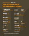 Генеральний штаб ЗСУ: російські агресори вже втратили в Україні близько 845310 (+1240) живої сили, 22753 (+46) артсистем та багато іншої техніки