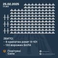 ОДЕСА, 25 ЛЮТОГО 2025 РОКУ, КОНТЕКСТ-ПРИЧОРНОМОР’Я – Представники Повітряних Сил Збройних Сил України повідомили подробиці відбиття російського нічного повітряного удару по нашій країні. Як передає кореспондент ІА «Контекст-Причорномор'я», про це йдеться в телеграм-каналі «Повітряні Сили ЗС України». У повідомленні захисників українського неба сказано: ЗБИТО 6 КРИЛАТИХ РАКЕТ ТА 133 ВОРОЖИХ БПЛА, 79 БЕЗПІЛОТНИКІВ – НЕ ДОСЯГЛИ ЦІЛЕЙ (ЛОКАЦІЙНО ВТРАЧЕНІ) ➖➖➖➖➖➖➖➖➖➖ У ніч на 25 лютого 2025 року (із 19.00 24 лютого) противник атакував 213-ма ударними БпЛА типу Shahed і безпілотниками-імітаторами різних типів із напрямків: Орел, Брянськ, Курськ, Приморсько-Ахтарськ – рф., а також завдав удару 7-ма крилатими ракетами Х-101 із літаків стратегічної авіації Ту-95мс. Повітряний напад відбивали авіація, зенітні ракетні війська, підрозділи РЕБ та мобільні вогневі групи Повітряних Сил та Сил оборони України. 💥 Станом на 11.00 підтверджено збиття 6-ти крилатих ракет Х-101 та 133-х ударних БпЛА типу Shahed та безпілотників інших типів у Полтавській, Сумській, Київській, Чернігівській, Черкаській, Кіровоградській, Житомирській, Миколаївській та Дніпропетровській областях. 79 ворожих безпілотників-імітаторів — локаційно втрачено (без негативних наслідків). Внаслідок ворожої атаки постраждали Київщина та Житомирщина. ✊ Тримаймо небо! 🇺🇦 Разом – до перемоги! |