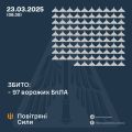 Повітряні сили ЗСУ: вночі збито 97 «шахедів», запущених росіянами по Україні