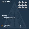 Повітряні сили ЗСУ: вночі збито 9 «шахедів», запущених росіянами по Україні