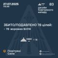 Повітряні сили ЗСУ: вночі знешкоджено 78 засобів повітряного нападу, запущених росіянами по Україні