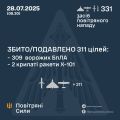 Повітряні сили ЗСУ: вночі знешкоджено 311 засобів повітряного нападу, запущених росіянами по Україні