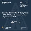 Повітряні сили ЗСУ: вночі знешкоджено 45 засобів повітряного нападу, запущених росіянами по Україні