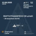 Повітряні сили ЗСУ: вночі знешкоджено 36 засобів повітряного нападу, запущених росіянами по Україні