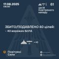 Повітряні сили ЗСУ: вночі знешкоджено 40 засобів повітряного нападу, запущених росіянами по Україні