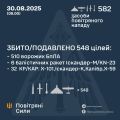 Повітряні сили ЗСУ: вночі знешкоджено 548 засобів повітряного нападу, запущених росіянами по Україні