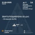 Повітряні сили ЗСУ: вночі знешкоджено 33 засоби повітряного нападу, запущені росіянами по Україні