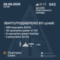 Повітряні сили ЗСУ: вночі знешкоджено 611 засобів повітряного нападу, запущених росіянами по Україні