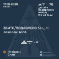 Повітряні сили ЗСУ: вночі знешкоджено 54 засоби повітряного нападу, запущені росіянами по Україні