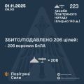 Повітряні сили ЗСУ: вночі знешкоджено 206 засобів повітряного нападу, запущених росіянами по Україні