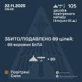 Повітряні сили ЗСУ: вночі знешкоджено 89 засобів повітряного нападу, запущених росіянами по Україні