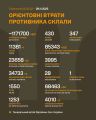 ОДЕСА, 28 ЛИСТОПАДА 2025 РОКУ, КОНТЕКСТ-ПРИЧОРНОМОР’Я – Зведення Генерального штабу Збройних Сил України про бойові втрати російських окупантів внаслідок агресії проти нашої країни. Як повідомляє кореспондент ІА «Контекст-Причорномор’я», про це йдеться на Фейсбук-сторінці Генерального штабу ЗСУ. У повідомленні Міноборони України сказано: Загальні бойові втрати противника з 24.02.22 по 29.11.25 орієнтовно склали / The estimated total combat losses of the enemy from 24.02.22 to 29.11.25 особового складу / personnel – близько 1 171 700 (+910) осіб / persons танків / tanks – 11 381 (+1) од. бойових броньованих машин / troop-carrying AFVs – 23 658 (+15) од. артилерійських систем / artillery systems – 34 733 (+3) од. РСЗВ / MLRS – 1 550 (+0) од. засоби ППО / anti-aircraft systems – 1 253 (+0) од. літаків / aircraft – 430 (+0) од. гелікоптерів / helicopters – 347 (+0) од. БПЛА оперативно-тактичного рівня / UAV operational-tactical level – 85 343 (+106) од. крилаті ракети / cruise missiles – 3 995 (+0) од. кораблі / катери / warships / boats – 28 (+0) од. підводні човни / submarines – 1 (+0) од. автомобільна техніка та автоцистерни / vehicles and fuel tanks – 68 463 (+64) од. спеціальна техніка / special equipment – 4 010 (+2) од. Дані уточнюються / Data are being updated. Бий окупанта! Разом переможемо! |