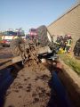 Спасателям пришлось деблокировать водителя упавшего с моста трактора