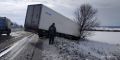 Спасателям пришлось вытаскивать из снежного заноса тяжелый грузовик
