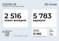 МОЗ: в Украине за сутки выявлено 2 516 новых случая COVID-19, умерло от него 63человека