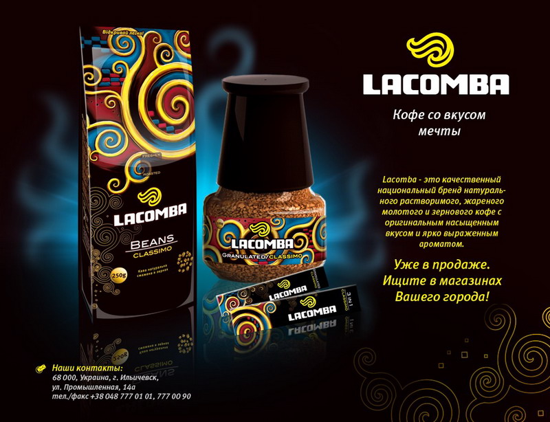 В начале 2011 года компания ООО «УкрКофе» ввела в эксплуатацию завод по производству растворимого кофе в городе Ильичевске и начала выпуск кофейной продукции. Предприятие с английскими, немецкими и украинскими инвестициями, построено с нуля и оснащено современным высокотехнологичным оборудованием производства ведущих мировых компаний производителей технологической оснастки для пищевой промышленности (Индия, Бразилия, Германия, Чехия). Наши специалисты совместно с высококвалифицированными инженерами из Германии, Индии и Бразилии смонтировали, запустили, наладили и вывели на промышленную мощность производство полного цикла, которое из зеленого зерна позволяет получать натуральный агломерированный растворимый кофе, жареный кофе в зернах и молотый. Основными поставщиками сырья для ООО «УкрКофе» являются такие страны как Индия, Бразилия, Эфиопия, Колумбия и другие. Новый завод будет выпускать кофе под торговой маркой «Lacomba» («Лакомба»), которая имеет свою собственную необычную историю и определенный стандарт вкуса. Этот особый вкус и технологии производства (купаж, обжарка, помол) разрабатывались и подбирались нашими специалистами совместно с ведущими технологами из Германии, Испании, Индии и Бразилии. В Украине это первое предприятие такого уровня, позволяющее производить кофейную продукцию в объеме 2000 тонн в год. Товар планируется реализовывать, как на украинском рынке, так и в России, Беларуси, Молдове, а также в странах восточной Европы. |