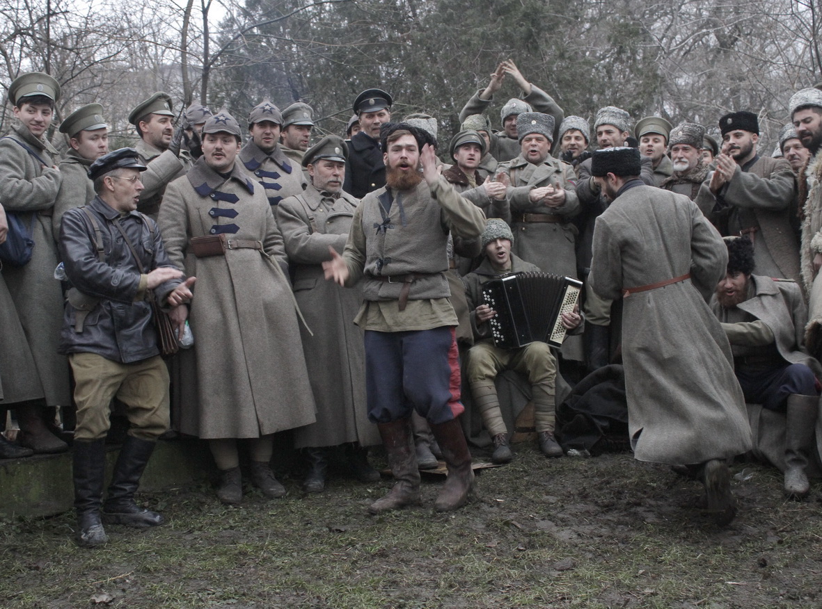 В эти январские дни знаменитая Потемкинская лестница утратила свое изящество и ощетинилась наблюдательными вышками с часовыми и брустверами из мешков с песком. В сквере внизу появилась стена с проемами, откуда выглядывают старинные пушки морской артиллерии, чуть выше по склону павильончик для отдыха и парковые скульптуры. Вокруг видны следы разрухи, как будто оставшиеся после недавних боев. Периодически на дорожках появляются люди, одетые в форму солдат и офицеров Белой и Красной армий времен Гражданской войны…Всемирно известный режиссер Никита Михалков снимает в Одессе эпизоды из исторического фильма «Солнечный удар» об эвакуации Белой армии из России по произведениям Ивана Бунина.