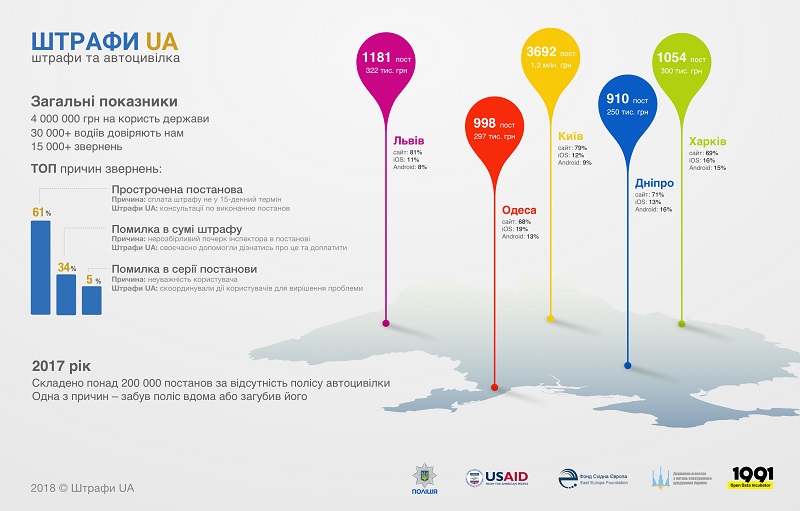 “Полис всегда должен быть с собой. По данным Национальной Полиции Украины (департамента информационно-аналитической поддержки), только за 2017 год было выписано около 200 000 штрафов, связанных с автоцивилкой. Анализ статистики оплаченных штрафов позволил нам выявить: часто такие штрафы возникают из-за того, что у документа истек срок действия, либо его забыли дома. Проблема с потерей бумажного полиса, неудобством хранения как бумажного, так и электронного полиса создает водителям “головную боль” и финансовые недостачи. Только в течение 1 квартала 2018 в результате ДТП по ОСАГО пострадавшие получили 529 млн грн, что невозможно реализовать без полиса “на руках” во время ДТП. Потому мы решили дополнить наш сервис возможностью покупки и удобного хранения ОСАГО. Реализовать её как он-лайн, так и через смартфон.” — говорит Денис Дмитров, основатель сервиса Штрафы UA. Сервис предоставляет гарантию надежности страховых компаний, в которых приобретается автогражданка. Сотрудничают только с проверенными страховыми компаниями. Скачать обновление можно в Google Market | AppStore либо зайти он-лайн. По данным МТСБУ за период февраль-июнь приобретено более 15 тыс электронных полисов. Как отмечают в МТСБУ к февралю 2019 года планируется полностью перейти на электронный формат страхования. МТСБУ решили также проблему с проверкой в реальном времени е-полисов, создав совместный с полицией продукт и интегрировав в планшеты полиции горячую кнопку МТСБУ. Кнопка позволяет получить информацию о наличии действующего полиса по конкретному автомобилю напрямую из централизованной базы данных МТСБУ. Потому вопрос хранения и использования становится особенно актуальным. Сейчас Штрафи UA пользуется более 30 тысяч человек, 25 тыс. из которых оплачивают через него штрафы. В госбюджет через Штрафи UA оплачено более 4 млн.грн штрафов. Напомним, приложение Штрафи UA вышло в начале сентября 2016 года в рамках инкубационной программы 1991 Open Data Incubator и попало в топ-10 бесплатных приложений в рубрике «Финансы» украинского App Store. В сентябре 2017 года команда получила 400 тыс.грн на развитие сервиса и внедрение функции безопасного вождения, развитие которой станет следующим этапом обновлений. Это стало возможно благодаря финансовой поддержке, предоставленной проектом USAID/UK aid «Прозорість та підзвітність в державному управлінні та послугах»/ТАРАS, которая реализуется Фондом Евразия в партнерстве с Фондом “Східна Європа” и ГО «Social Boost».