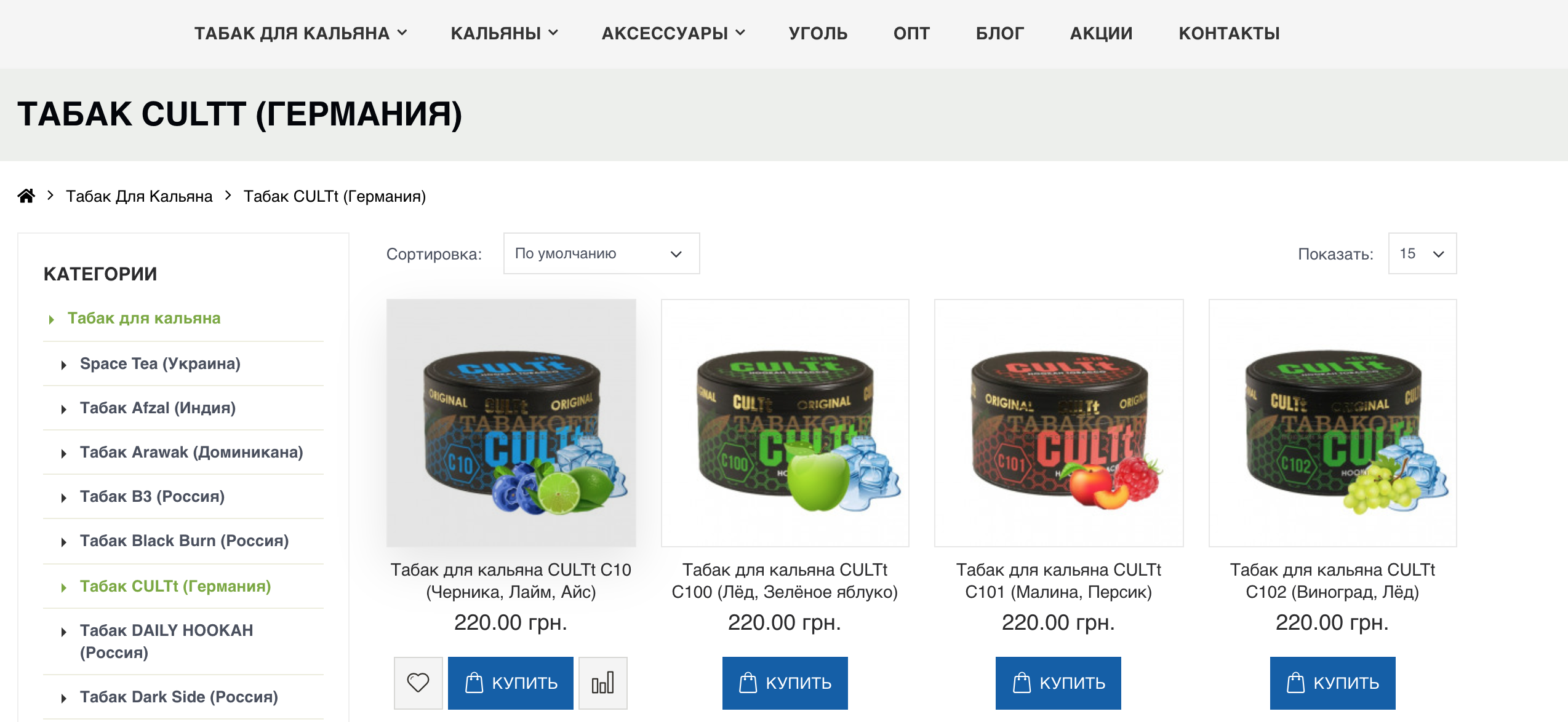 Почему стоит обратиться в магазин ТабакоффИнтернет-магазин Tabacoff Украина является официальным дистрибьютором и предлагает фирменный табак Культ по наиболее выгодной цене. У нас можно купить вотрерпайпы, аксессуары к ним и сопутствующие товары для уютной дымной вечеринки.